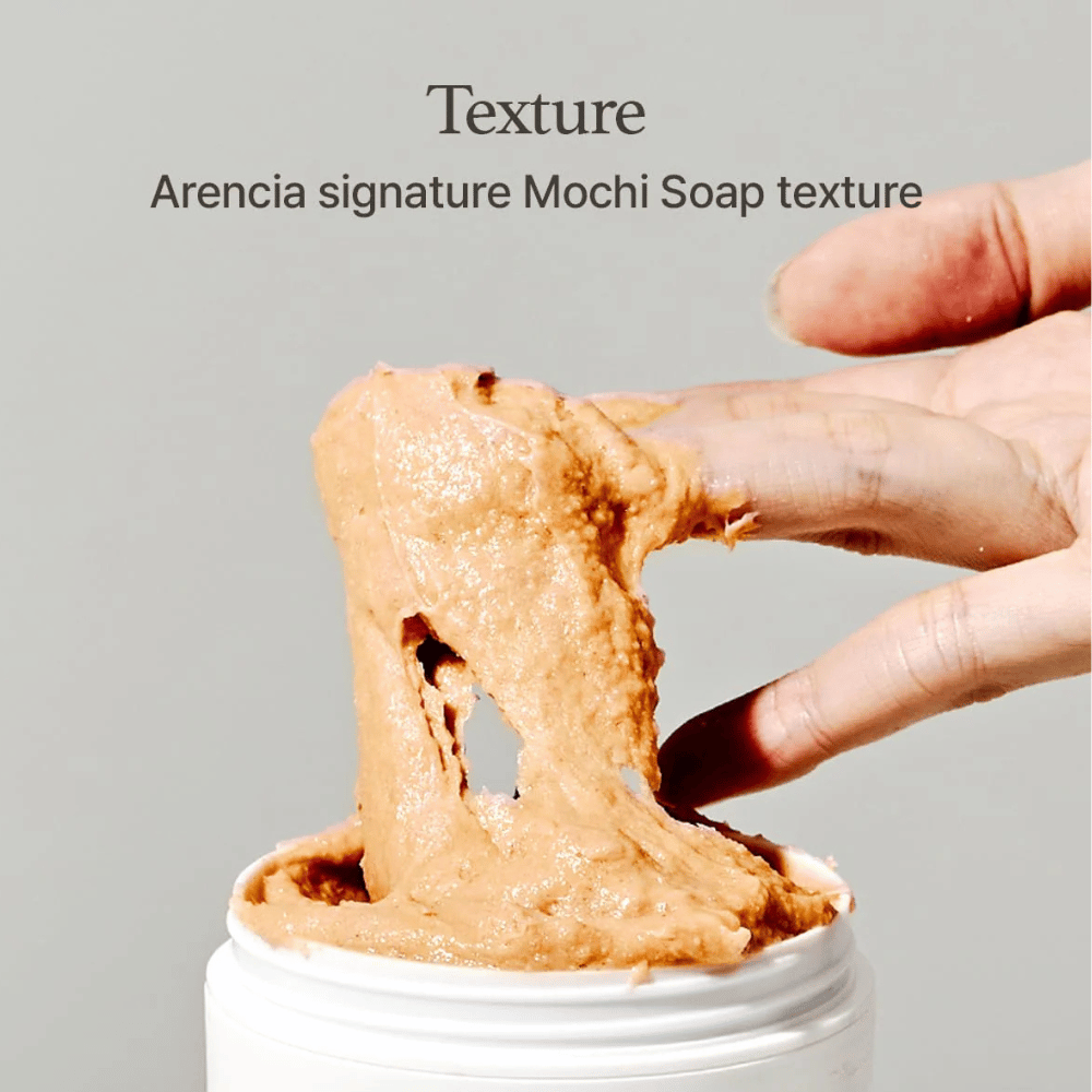 Arencia Calendula Rice Mochi Cleanser er en unik 2-i-1 ansiktsrens og mild peeling inspirert av mochi – myk, spenstig og fylt med pleie. Den kremete teksturen skummer lett opp og smelter bort sminke, talg og urenheter, samtidig som huden beroliges og fuktes.