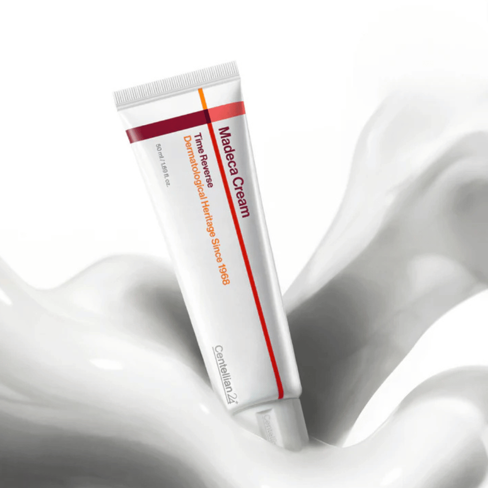 Centellian24 Madeca Cream Time Reverse er en konsentrert reparerende og anti-age ansiktskrem utviklet for å styrke hudbarrieren, redusere synlige aldringstegn og tilføre dyp fuktighet. Formelen kombinerer Teca (Centella Asiatica-ekstrakt), peptider, ceramider og hyaluronsyre for å forbedre hudens fasthet, jevne ut tekstur og støtte regenerering av svekket hud. Kremen har en rik, nærende konsistens som absorberes godt uten å virke tung, og er spesielt godt egnet for hud som trenger ro, beskyttelse og fornyet styrke. Ved jevnlig bruk oppleves huden fastere, glattere og mer balansert.