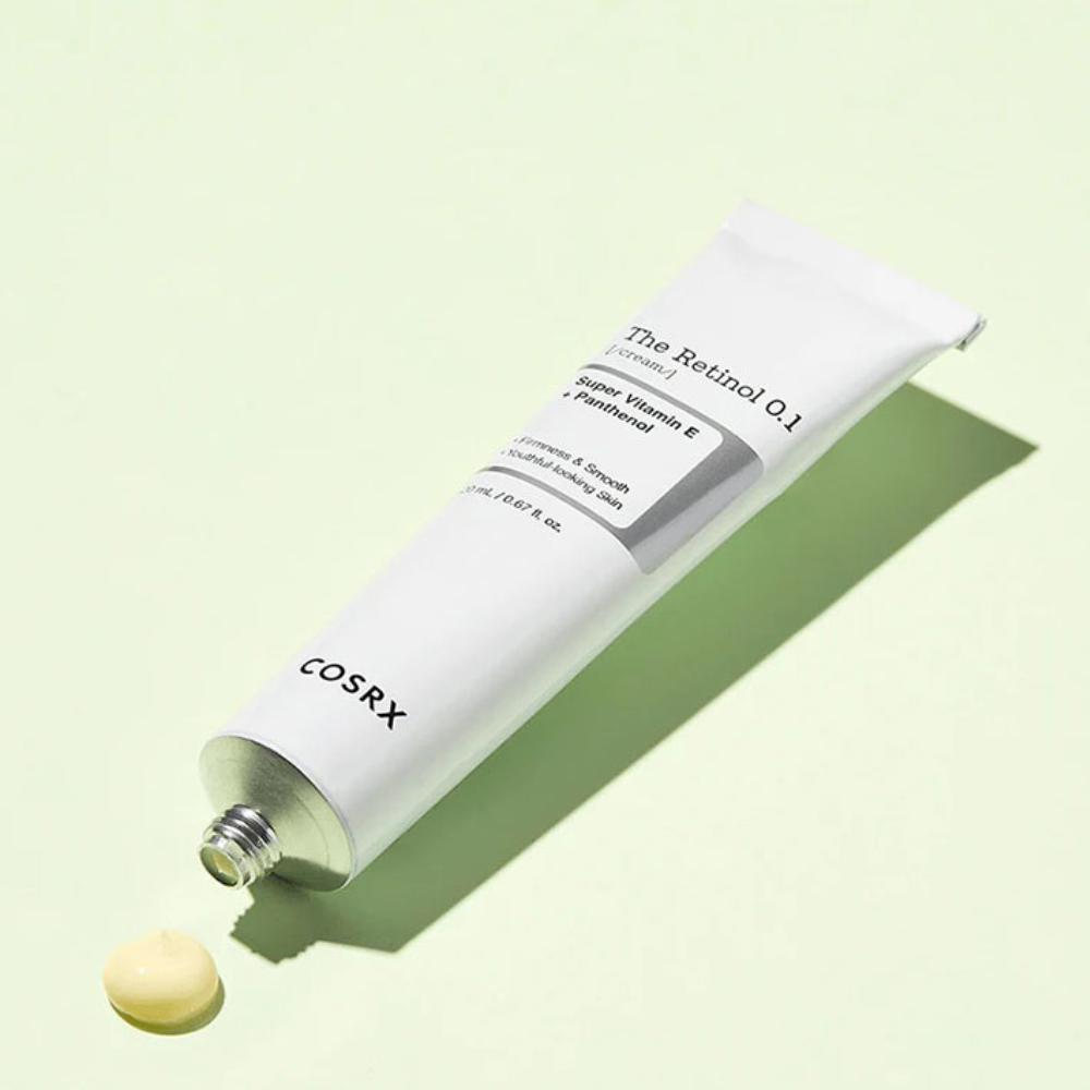 COSRX The Retinol 0.1 Cream er en effektiv ansiktskrem formulert med 0,1 % ren retinol for å forbedre hudens elastisitet, redusere rynker og gjenopprette glød. Beriket med panthenol for å lindre irritasjon, adenosin for å motvirke slapp hud og tokotrienol (en form for vitamin E) for å beskytte mot frie radikaler.