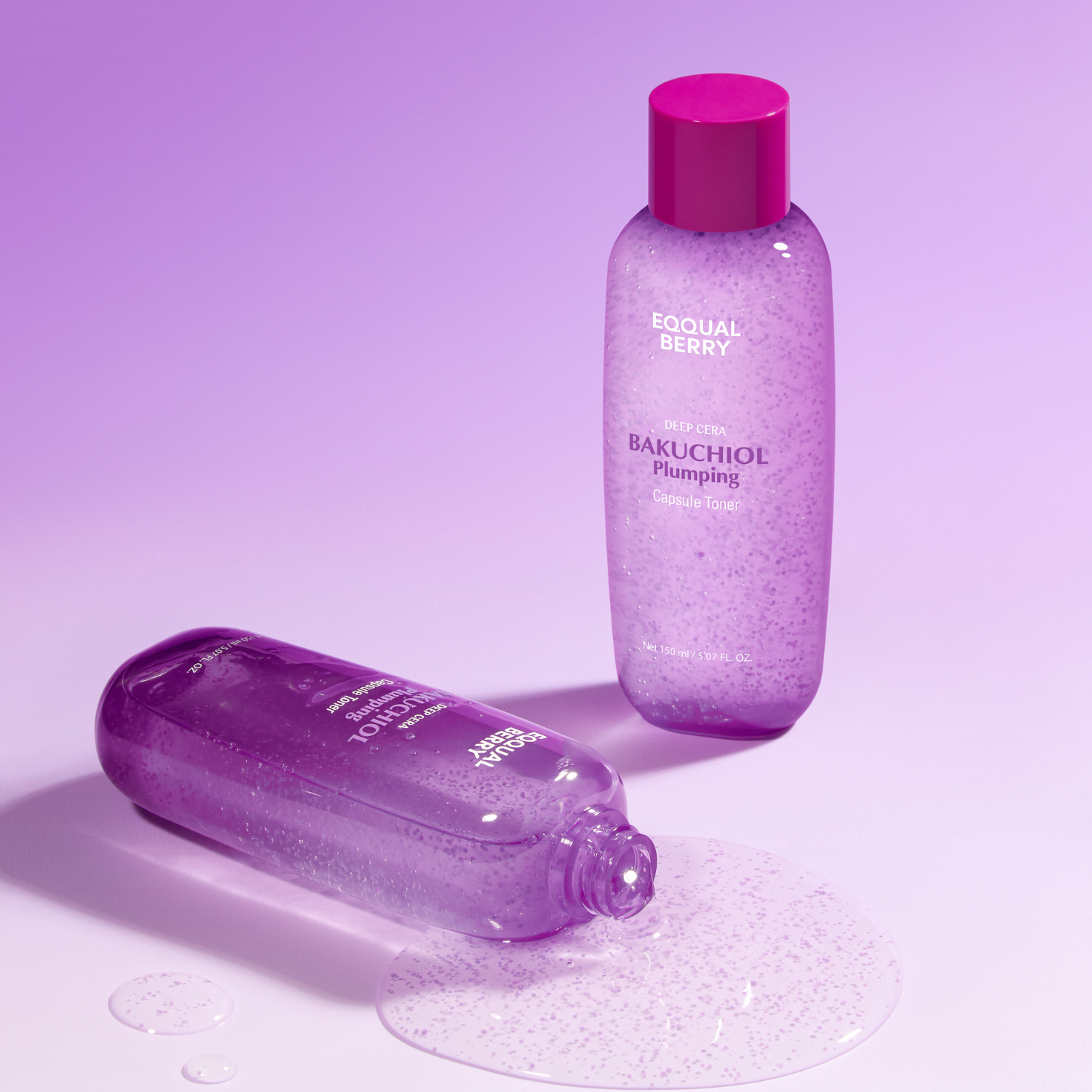 EQQUALBERRY Bakuchiol Plumping Capsule Toner er utviklet for å gi huden et effektivt første steg etter rens. Toneren kombinerer en lett, fuktighetsgivende base med kapsler som inneholder bakuchiol – et skånsomt alternativ til retinol – som frigjøres når produktet påføres huden.