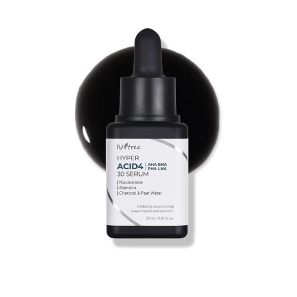 Isntree Hyper Acid 4 AHA BHA PHA LHA 30 Serum effektiviserer hudpleierutinen din. Dette serumet inneholder en effektiv blanding av AHA, BHA, PHA og LHA som bidrar til å rense porene, fjerne overflødig talg og døde hudceller. AHA hjelper med å glatte ut hudoverflaten, BHA går dypt inn i porene for å fjerne urenheter, PHA bidrar med fuktighet og forsiktig peeling, mens LHA tilbyr en mild eksfoliering som er skånsom nok for sensitiv hud. Formulert med niacinamid og allantoin, hjelper dette serumet også med å berolige huden og opprettholde fuktighetsbalansen, slik at huden føles myk og ser jevn ut.