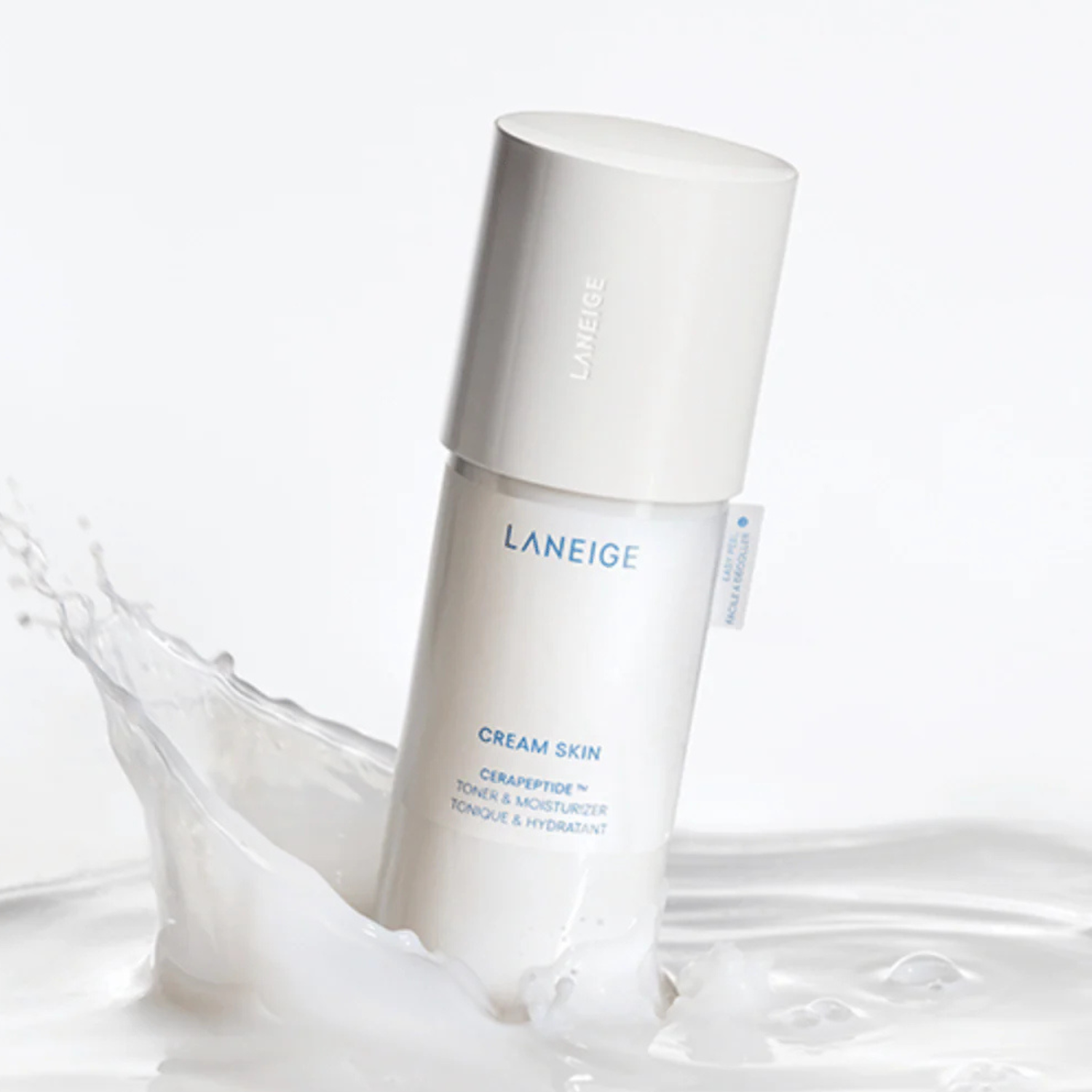 Laneige Cream Skin Cerapeptide er en fuktighetsgivende toner utviklet for å gi huden intensiv hydrering og styrke hudbarrieren. Produktet har en lett, melkeaktig tekstur som kombinerer egenskapene til en toner og en krem, og gir dyp fuktighet uten å føles tung på huden.