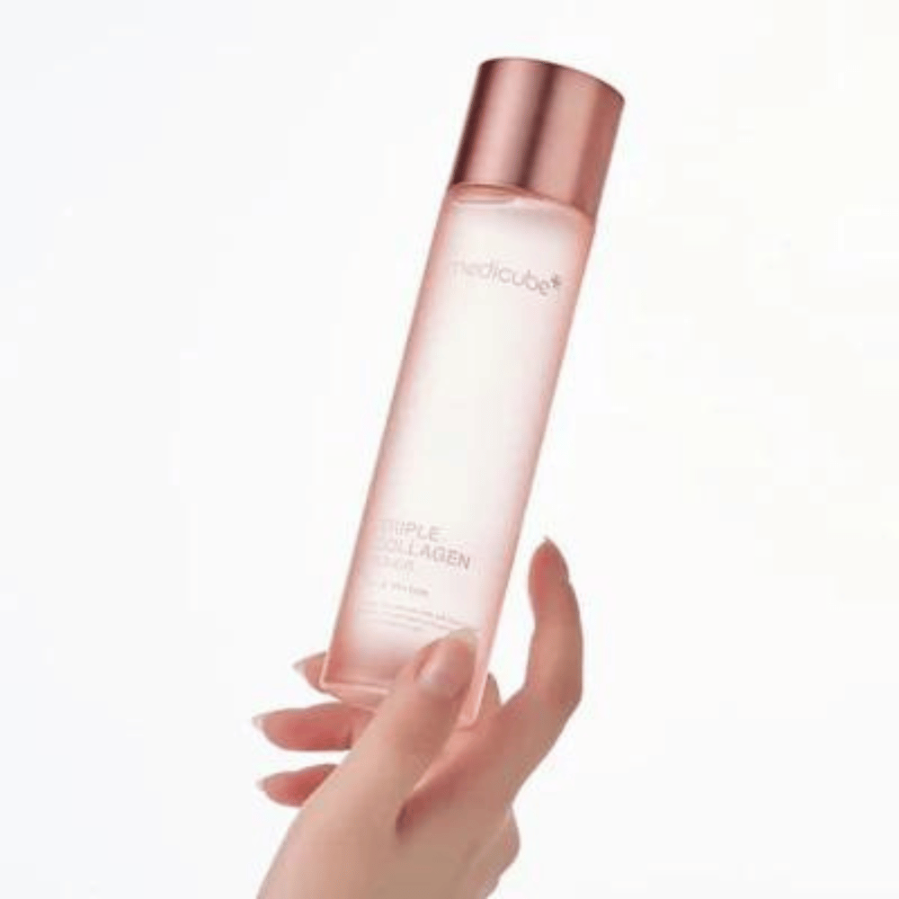 Medicube Triple Collagen Toner 4.0 gir trippel kollagen og trippel glød. Forsterket med 10,000ppm kollagen revitaliserer og fukter denne toneren i dybden. Oppnå perfekt hud som gløder fra innsiden med denne Glass Glow Essence (Toner).