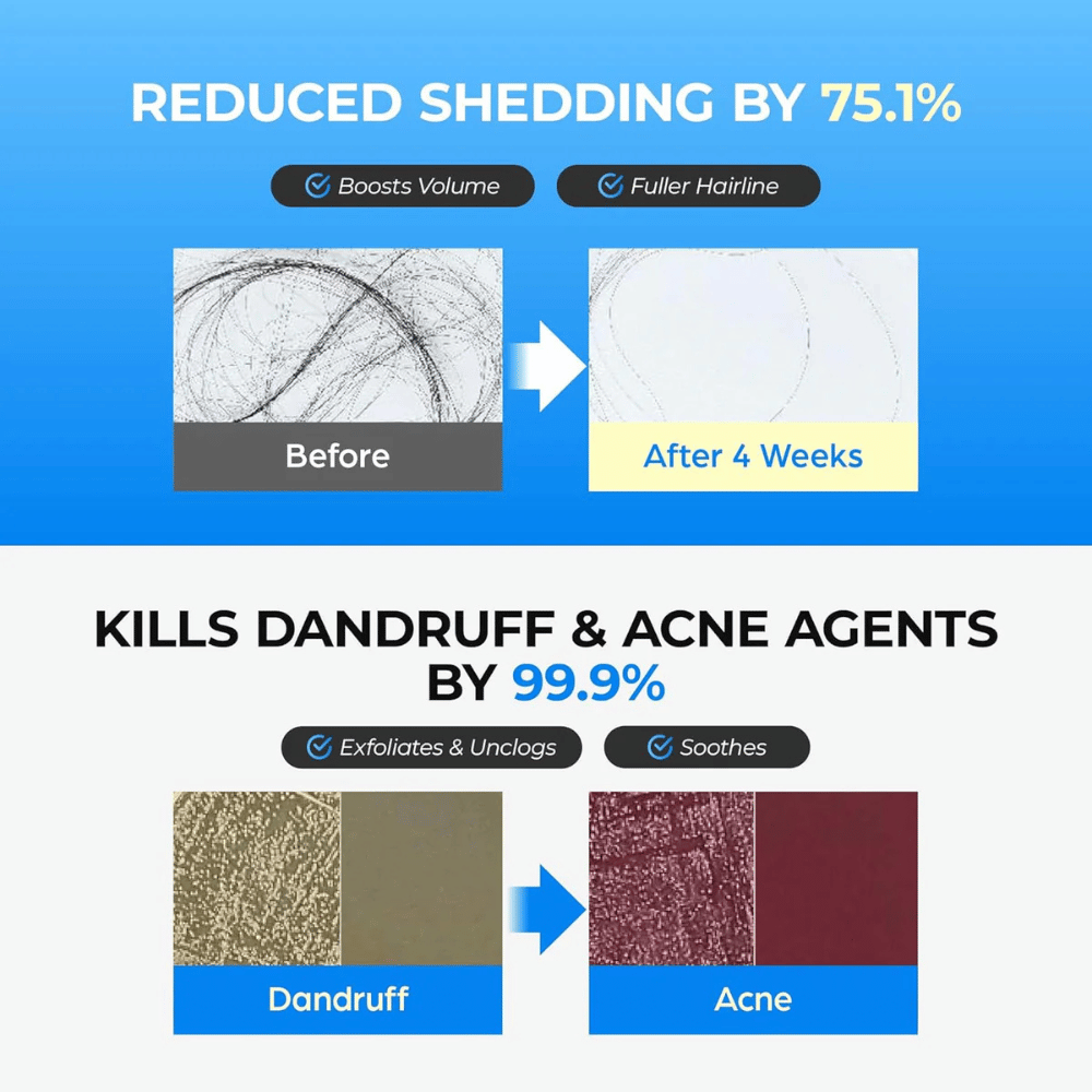 Rensende og eksfolierende — fjerner talg, døde hudceller og produktrester fra hodebunnen