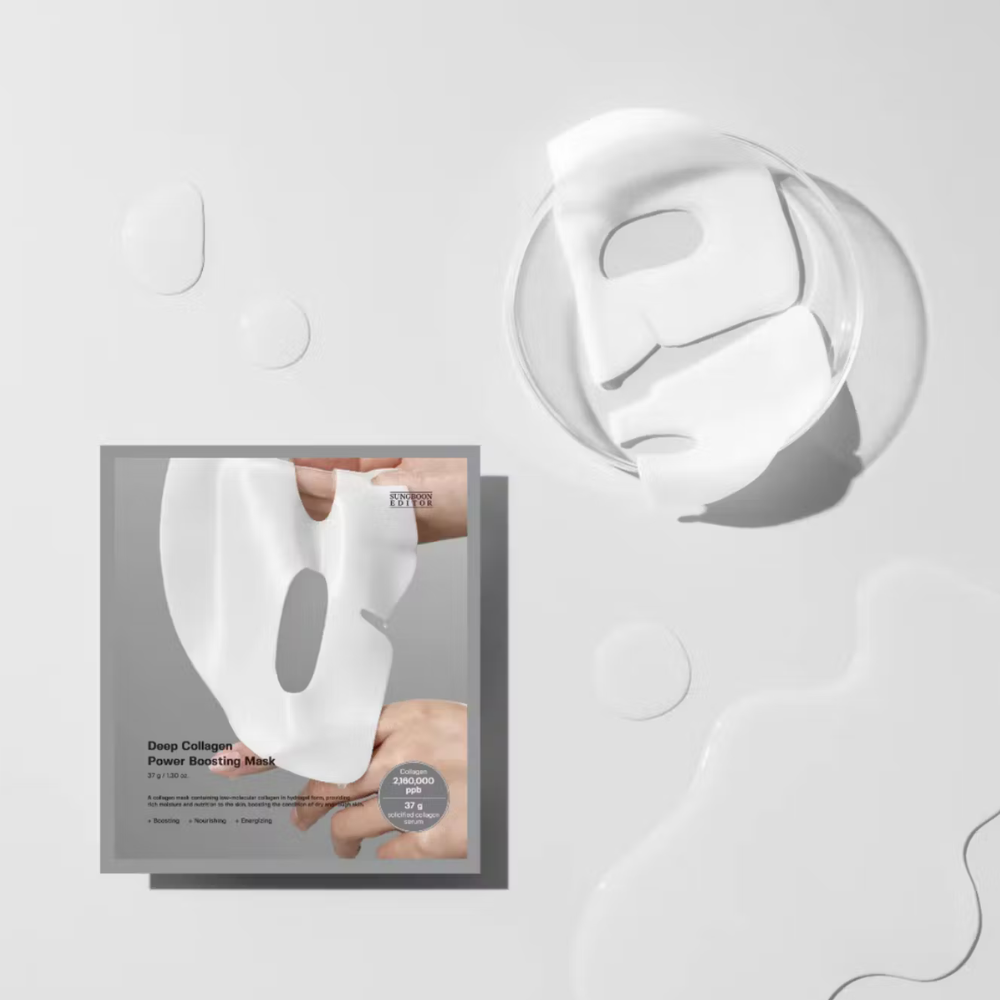 Deep Collagen Anti-Wrinkle Lifting Mask fra Sungboon Editor er en avansert gelmaske designet for å bekjempe fine linjer, rynker og dehydrert hud. Med 83 % lavmolekylært kollagen og ingredienser som peptider og roseekstrakt, forbedrer den hudens elastisitet og gir dyp fuktighet.