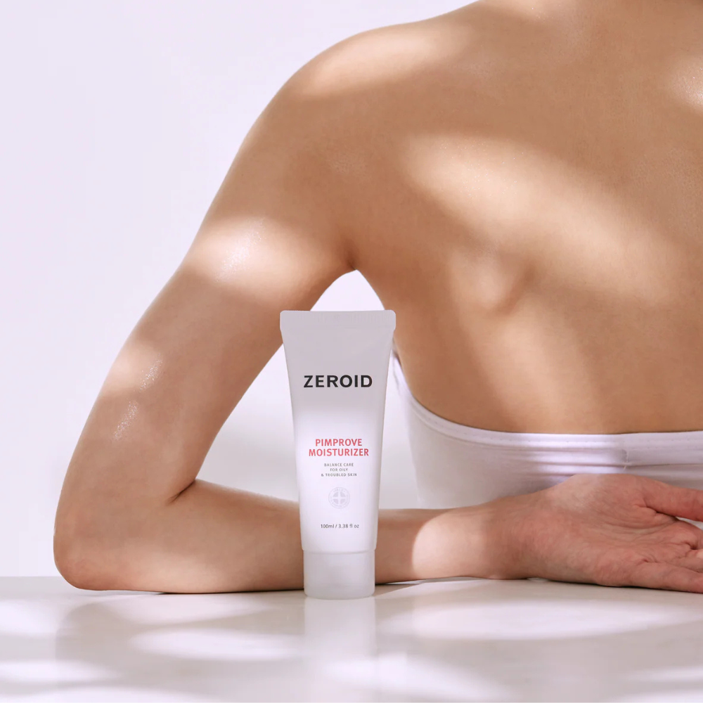 ZEROID Pimprove Moisturiser er en lett, ikke-komedogen fuktighetskrem utviklet for fet, kombinert og akneutsatt hud. Den bruker merkevarens MLE-formel (lipidbarriere-lik struktur) og er formulert for å balansere talgproduksjon, roe ned irritasjon og styrke hudbarrieren samtidig som den gir fukt uten å tette porer. Kremen absorberes raskt, legger seg lett på huden og gir en matt, frisk finish — perfekt for dem som ønsker en lett, balansert krem i hverdagen.